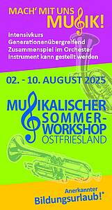 Der Musikalische Sommerworkshop hat das Ziel, Menschen aller Generationen an die Musik heranzuführen. Bei den Kursen handelt es sich nicht um Meisterkurse, sondern es sollen diejenigen zum Zuge kommen, die ein Instrument entweder noch gar nicht oder erst ein wenig spielen können. An neun Tagen wird von morgens 10:00 Uhr bis nachmittags in unterschiedlichen Kleingruppen (Trompete, Querflöte, Saxophon…) gelehrt und gelernt. Es gibt zusätzlich theoretischen Unterricht zu Atemtechniken, Notenkunde usw.
